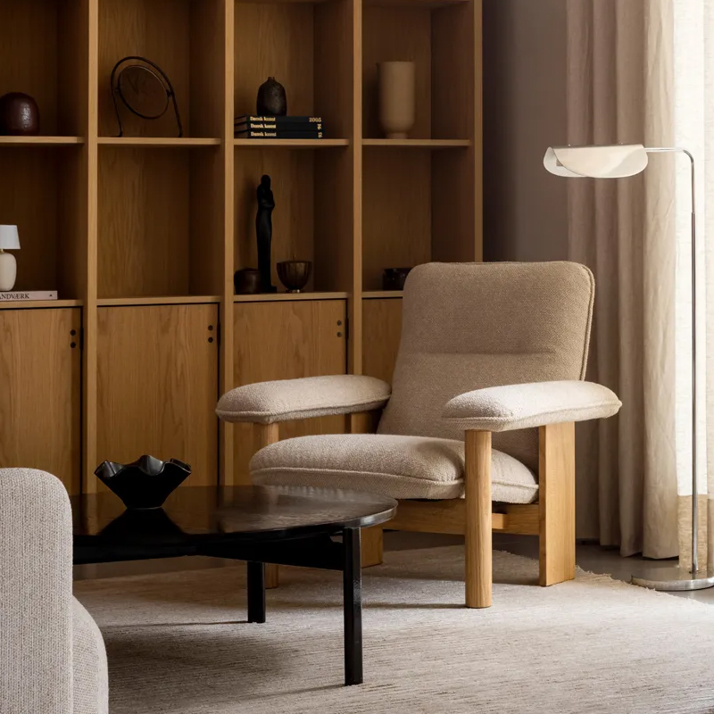 Audo Copenhagen Brasil nojatuoli on miellyttävän näköinen ja mukava istua. Runkomateriaalina on käytetty tammea ja verhoilu on bukleekankaasta. Tuolin ilmeessä yhdistyy sopivasti skandinaavinen kepeä sisustustyyli ja ylellinen pehmeys.