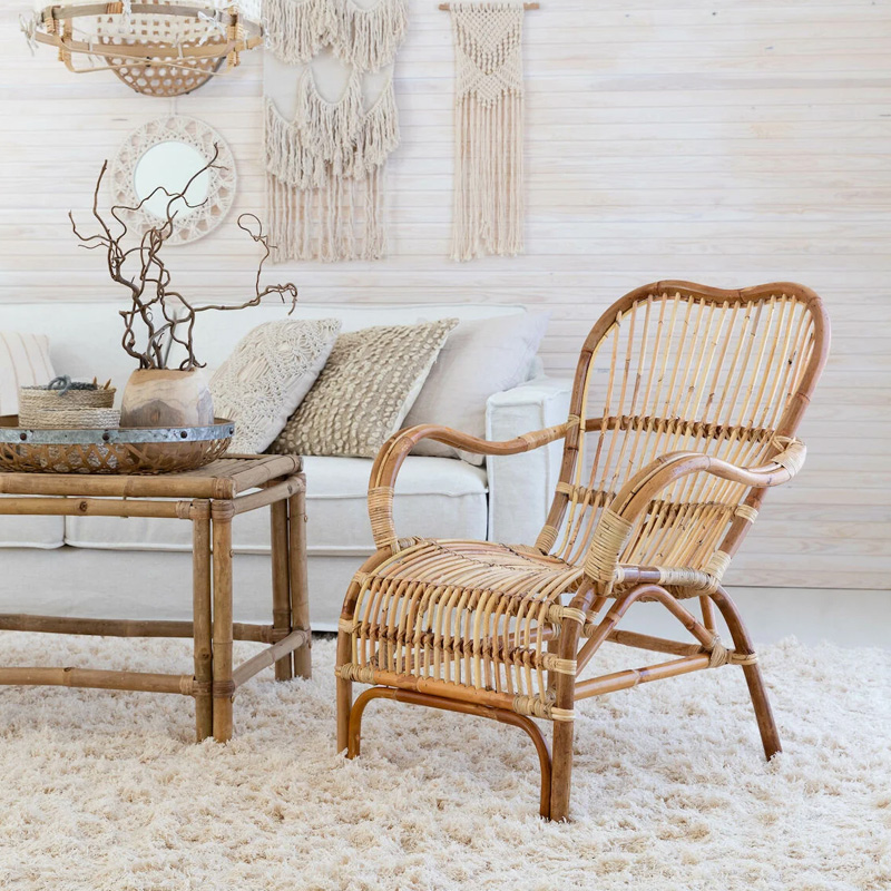 Aidosta rottingista valmistettu nojatuoli, joku tuo miellyttävän kodikasta ja lämmintä tunnelmaa tilaan. Voit täydentää tuolin ilmettä helposti erilaisilla istuinpehmusteilla.